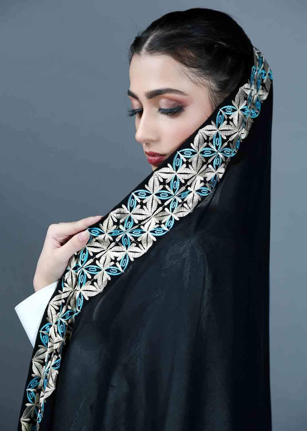 Embrace traditional modest fashion with this lovely Blue Petal Chaadar made with exquisite Chiffon Fabric and intricate embroidery - adding to its worth.